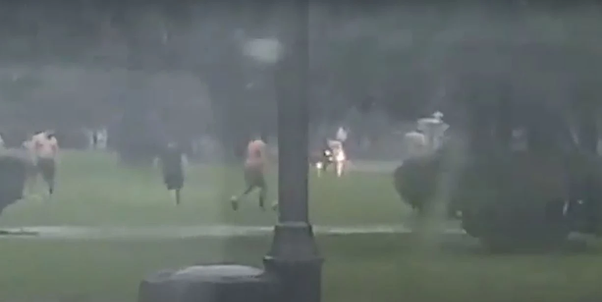Las fuertes tormentas que azotaron esta tarde a la provincia no fueron un impedimento para un grupo de tucumanos que se encontraban jugando al fútbol en un parque.