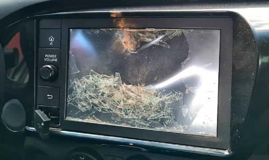 Mientras los uniformados lo reducían, familiares y vecinos salieron a agredirlos. Arrojaron piedras y palos contra ellos y los vehículos. En este episodio resultó lesionada una empleada policial y dañada una camioneta de la repartición (foto).