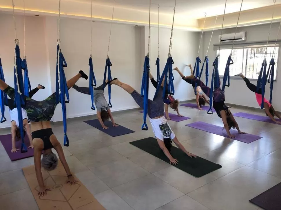 “Es una práctica de yoga, relativamente moderna en la que se realizan posturas de yoga adaptadas al elemento (columpio). Un sistema de trabajo conceptual que potencia el trabajo a nivel físico y emocional, trabajando de manera holística todo el ser y utilizando como plataforma el columpio. Combina pranayamas (ejercicios respiratorios), asanas (posturas) tradicionales de suelo, con movimientos acrobáticos y aéreos sin impacto,” manifiesta Huilen Piorno profesora de aeroyoga. “La particularidad de dicha práctica es la hamaca o columpio. Esta herramienta facilita y acerca a la realización de posturas y además presenta nuevos y diferentes desafíos”, explica.