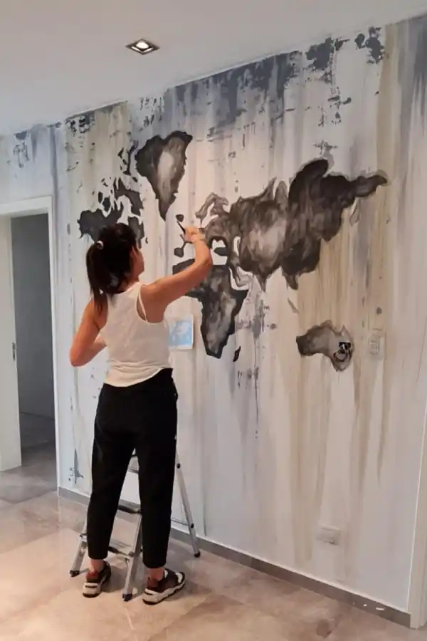 La artista María del Pilar Aiquel opinó que pandemia llevó a mucha gente a reinventar espacios para disfrutarlos mas. “¿Y quien no tiene esa pared grande blanca que no la puede ni mirar? Reconocían que querían hacer algo, pero no sabían qué hacer”, cuenta. “Lo mejor del mural es que en un día tenés la pared pintada y ninguna otra va a ser igual; además del valor agregado porque no deja de ser una obra de arte en casa”, destaca.