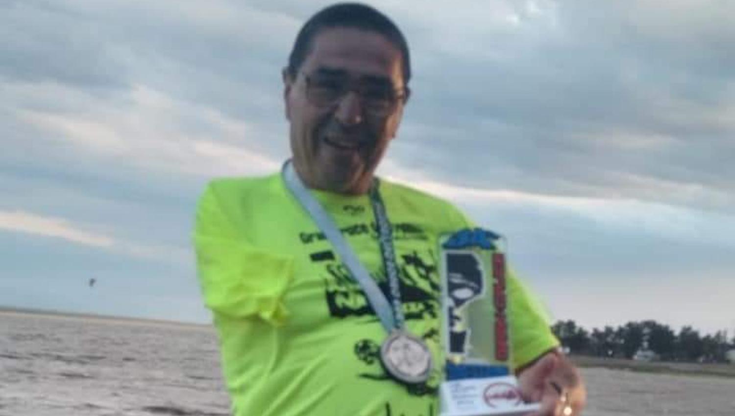 El hombre, quien sufre una discapacidad, cruzó nadando el lago y emocionó a todos sus compañeros.