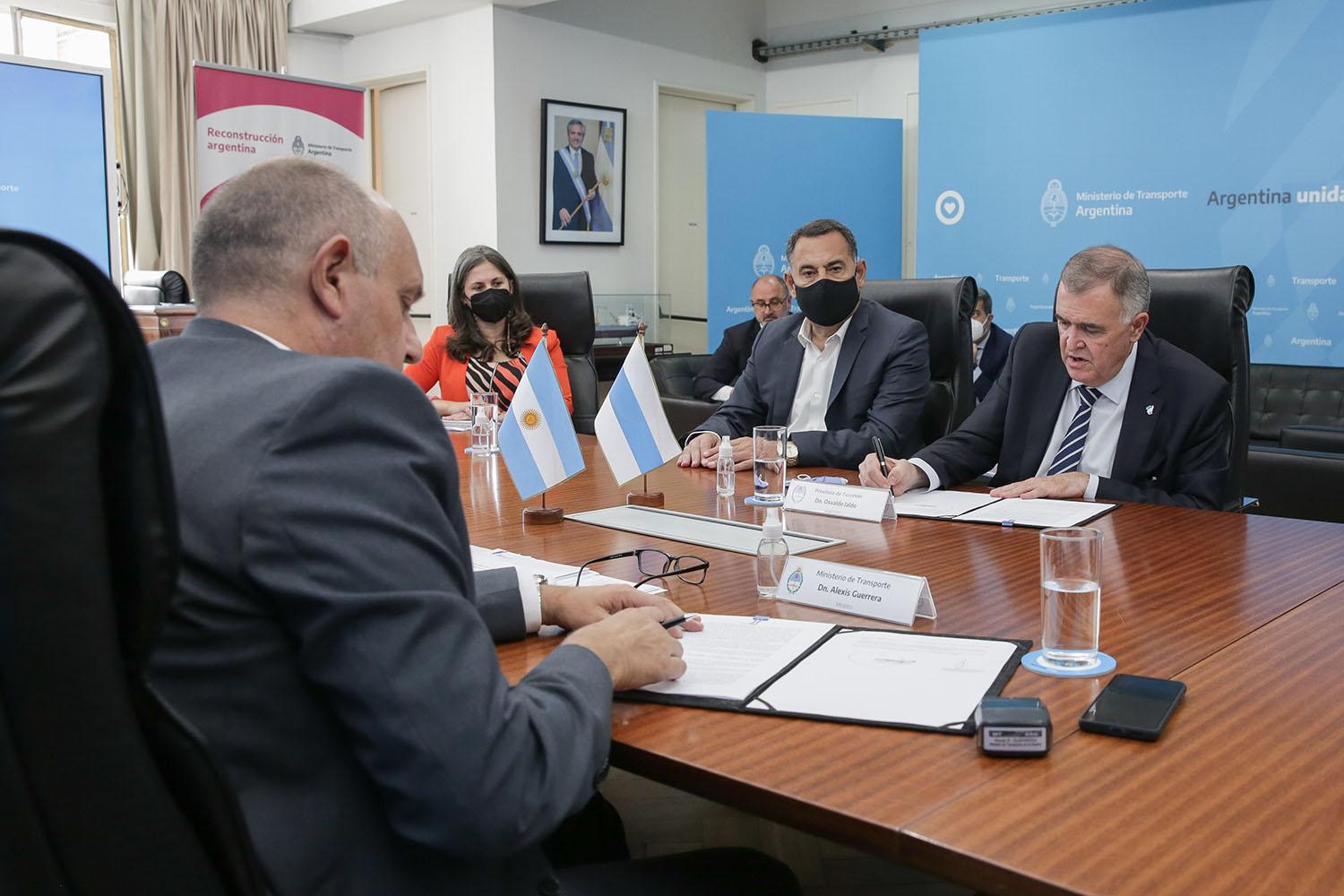 El gobernador interino Osvaldo Jaldo y el ministro de Transporte, Alexis Guerrera, firmaron ayer el convenio con el objetivo de brindar mayor equidad en la distribución de los recursos para un servicio que en la provincia utilizan mensualmente unas 500.000 personas.