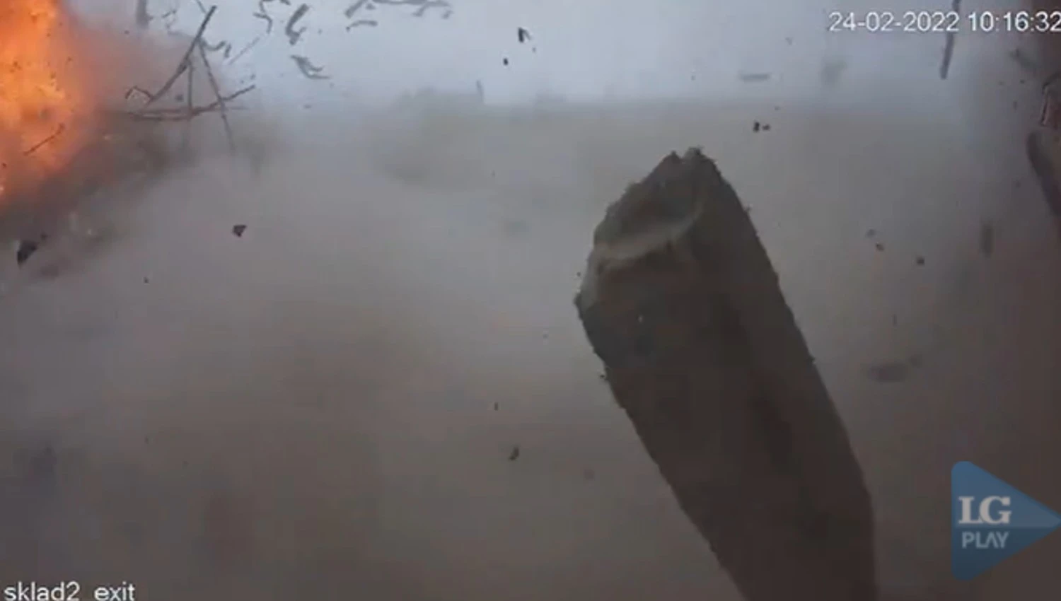 El momento exacto en el que un misil ruso cae sobre un galpón con equipamiento militar ucraniano fue captado por cámaras de seguridad, en medio de la escalada de violencia que desató Rusia sobre Ucrania.