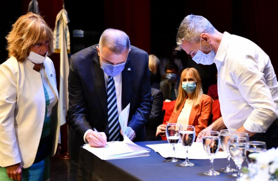 El Gobierno tucumano celebró un acto por la firma de convenios para la ejecución de programas federales y la inversión en infraestructura de instituciones educativas en el Teatro Mercedes Sosa. El evento estuvo encabezado por el gobernador interino, Osvaldo Jaldo, quien estuvo acompañado por el jefe de Gabinete de la Nación, Juan Manzur, y por titulares de distintas carteras del gobierno nacional.
