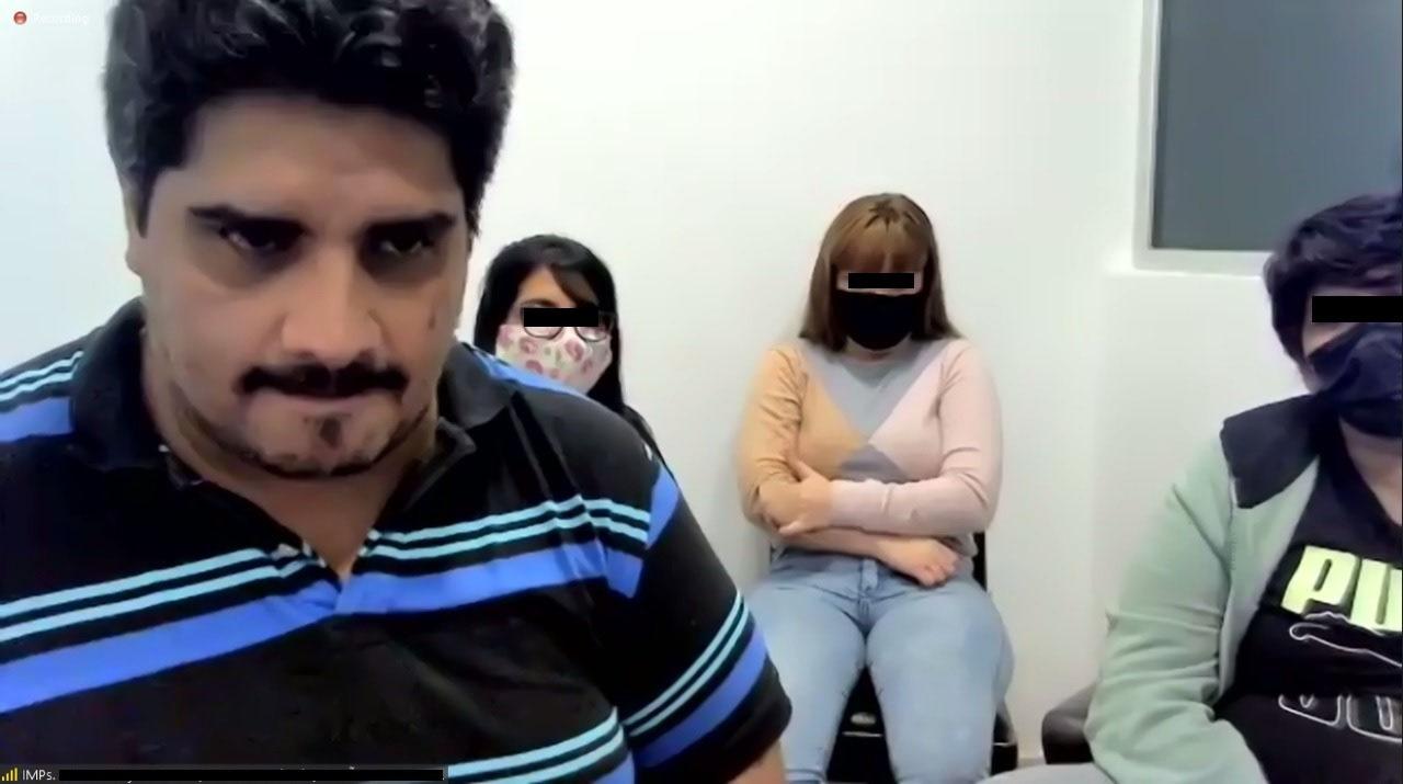 POCO VISIBLES. Las sospechosas esquivan la cámara: una de ellas aparece detrás de su defensor y otra fuera del marco durante la audiencia judicial.
