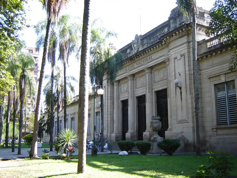 En 1905, la Nación encomendó el proyecto del Colegio Nacional al ingeniero tucumano Virgilio López García, y las obras comenzaron a fines de 1907. El edificio compone, junto con el Teatro San Martín, la vieja Legislatura y el antiguo Hotel Savoy (todas sobre avenida Sarmiento al 600), una unidad arquitectónica con líneas italianizantes, muy de moda en la época, en el sector norte de la ampliación decimonónica de la ciudad. El edificio, organizado alrededor de dos patios simétricos, se implantó en el centro de la manzana, rodeado de jardines, mirando hacia la plaza Urquiza Hacia el frente se plantaron altas palmeras, y en los otros tres lados, vegetación perimetral separada por una reja del espacio público, todo lo cual contribuyó a la integración visual y paisajística del colegio con la plaza. La inauguración se celebró el 8 de julio de 1914.