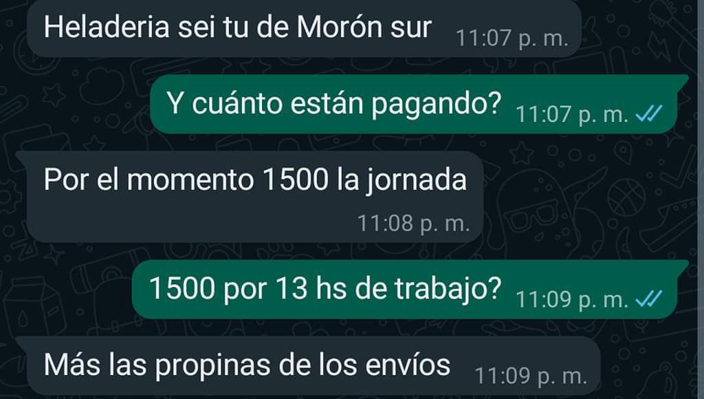 Un joven respondió por WhatsApp a la convocatoria de una heladería de la localidad bonaerense de Morón, que estaba necesitando cadetes para delivery.