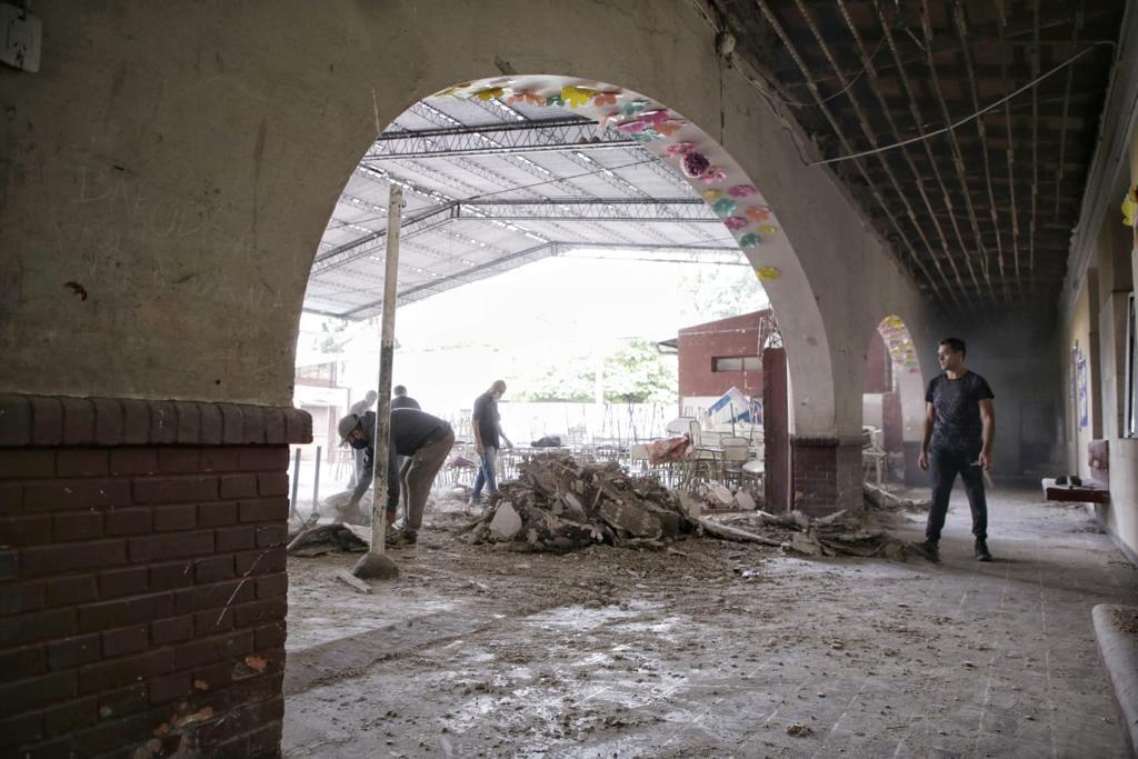 En tanto, el subsecretario de Bienestar Educativo Javier Palacios, dijo: “La idea es comenzar lo más pronto posible con la presencialidad en la escuela por eso estamos hoy sábado junto a todo el equipo trabajando. La Dirección de Bienestar, la de Seguridad y la Dirección de Materiales y Construcciones Escolares, apoyados por los camiones de la Dirección Provincial del Agua y Vialidad de la provincia y el equipo del Ente de Infraestructuras. También hoy se hizo fumigación de una parte de la escuela”.