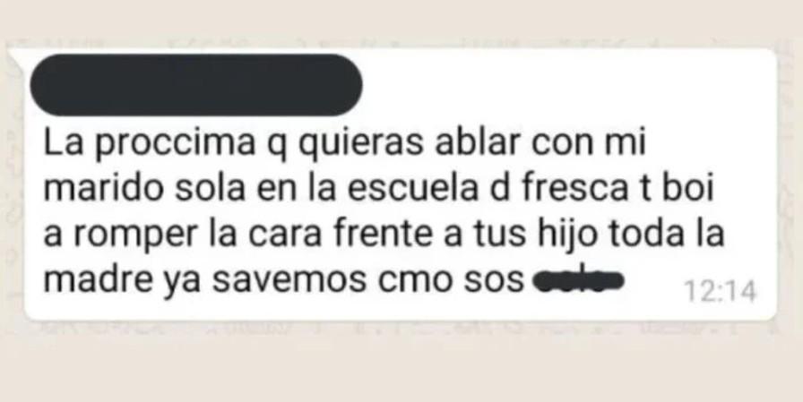 Y la pelea no tardó en trasladarse al grupo de WhatsApp.“ Roba marido, la próxima te voy a romper la cara frente a tus hijos”, fue una de las amenazas.