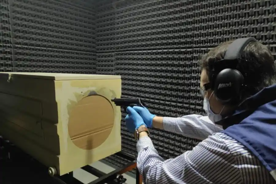 Haciendo una prueba balística se determina a que arma pertenece determinado proyectil. Para ello, en la morgue judicial hay una sala con paredes acústicas, similar a las que se utilizan en un estudio de radio, donde un perito realiza un disparo con el arma incautada hacia un recuperador balístico. El proyectil va atravesando diferentes superficies y en simultáneo, en una sala contigua, con un comparador balístico se determina la capacidad de daño del proyectil y el sonido que causa al atravesar cada superficie. Luego el proceso se repite con otra arma para determinar a cuál correspondería el proyectil que se halló en la escena de un hecho.