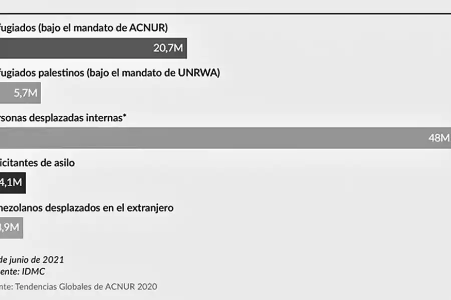 “La covid-19 detuvo muchas cosas, pero no detuvo el conflicto. Hubo un número récord de personas desplazadas, desarraigadas por desastres naturales y relacionados con el clima, y por conflictos antiguos y nuevos, a veces por segunda o tercera vez”, refiere el Informe Global. La propagación del coronavirus y el peligro de muerte reforzaron los incentivos estructurales preexistentes para migrar en aquellos lugares arrasados por regímenes autoritarios y la miseria. Los mismos motivos llevaron a los Estados a clausurar aún más sus bordes y a imponer nuevos requisitos de entrada.