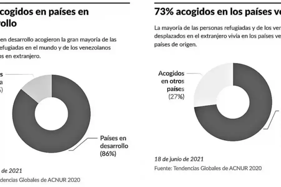 En el año desesperante 2020 y siempre según Acnur, los refugiados de las zonas más inhóspitas del planeta dependieron en especial de la voluntad y de la generosidad de países en desarrollo: el 86% de las naciones que recibieron desplazados pertenecen a ese estamento con Turquía, Paquistán, Uganda y Colombia a la cabeza. Con 1,2 millón de ingresos, Alemania es la nación europea que más se destaca en este plano. En los primeros 12 meses de la pandemia, más de dos tercios (68%) de todas las personas refugiadas procedían de sólo cinco países: Siria, Venezuela, Afganistán, Sudán del Sur y Birmania.
