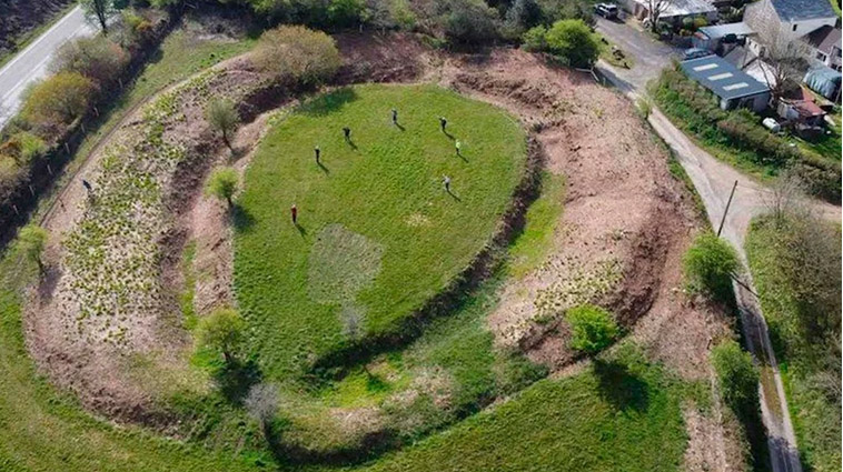 El lugar, conocido como Castilly Henge, es un recinto ovalado de 68 metros de largo y 52 metros de ancho. Se cree que fue construido a finales del Neolítico (3.000 a.C. a 2.500 a.C.) y que presenta un banco externo y un foso interno.