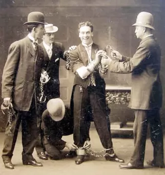 GRILLETES Y CADENAS. El mago era uno de los más reconocidos escapistas de aquellos años. Amigo de Houdini.