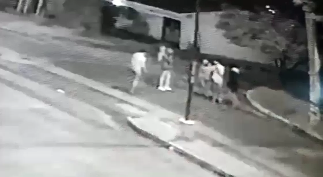 Según puede verse, el hombre camina tranquilo por la calle cuando de repente lo rodea un grupo de desconocidos. Sin resistirse, entrega todas sus pertenencias y los delincuentes se alejan.