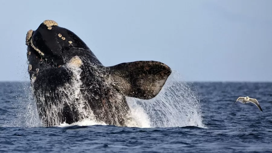 Las ballenas comenzaron a acercarse a Puerto Pirámides, la única localidad ubicada sobre Península Valdés, en el extremo noreste del Chubut, donde se realiza el avistamiento.