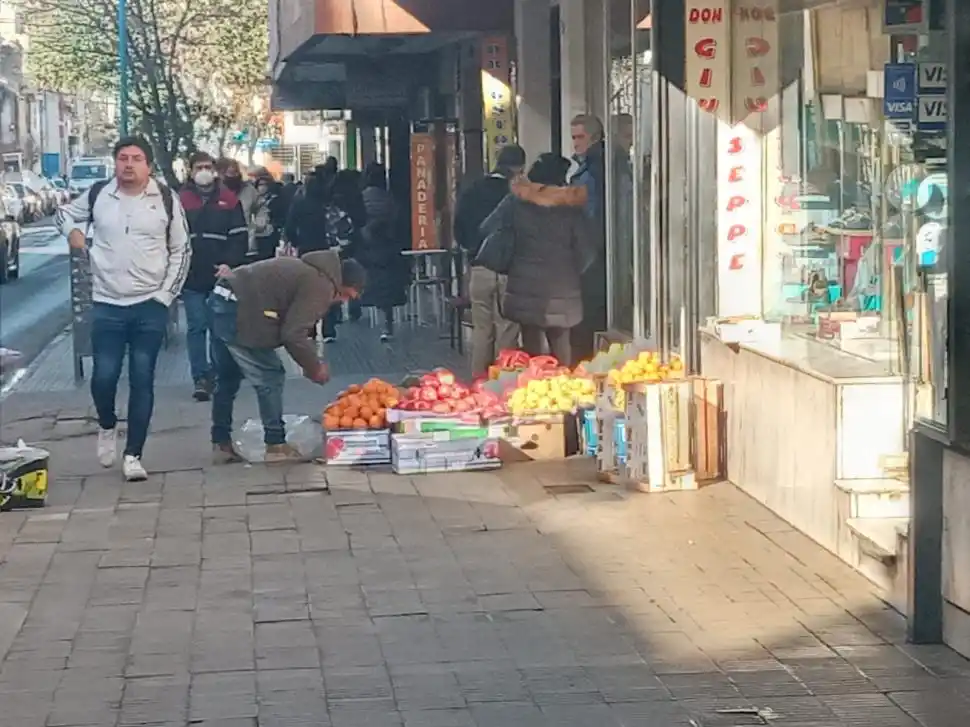 Un transeúnte reniega de que ya casi no puede pasar por la vereda de Ayacucho 50 porque está instalada una “verdulería ad hoc”, según describió en la leyenda de la foto enviada a LA GACETA.