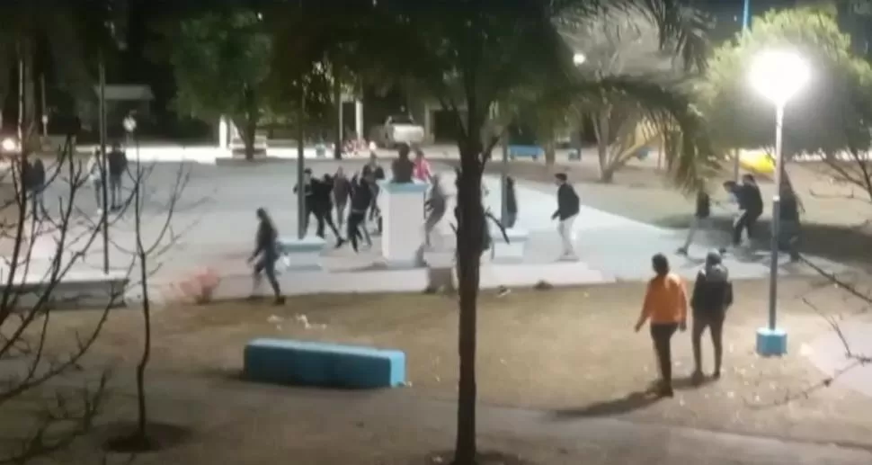 EN LA PLAZA. La pelea fue registrada por la cámara de un celular. captura de video