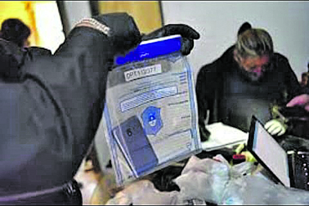 5- Mientras ello ocurre, los chantajistas le envían un acta de actuación policial falsa y una foto “trucha” de un allanamiento donde se muestra un celular secuestrado.