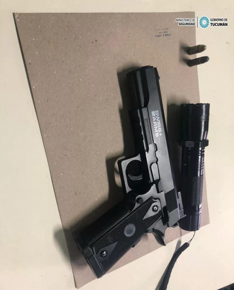 Ante la presencia de la madre y demás testigos se realizó una requisa de la mochila y encontraron la pistola, la picana eléctrica que tenía forma de linterna y dos cartuchos de pistolas de nueve milímetros. Los efectivos se comunicaron con la Unidad Fiscal de Decisión Temprana que inició actuaciones en contra de los padres, ya que el adolescente es menor de edad.