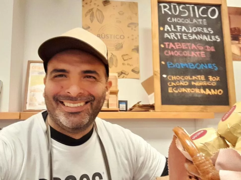 SATISFACCIÓN. El chocolatier tucumano Diego Armanini y sus alfajores.