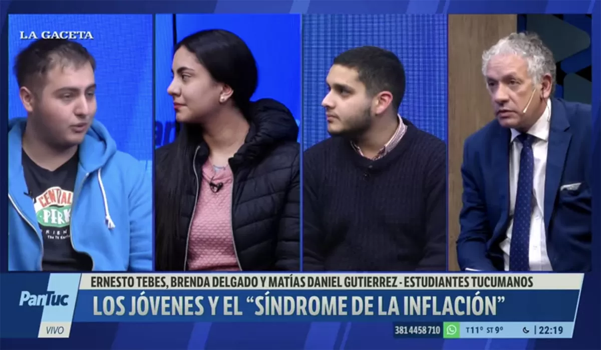 Así lo dejaron ver Brenda Delgado, Ernesto Teves y Matías Daniel Gutiérrez, que conversaron en el piso de "Panorama Tucumano" con el conductor del ciclo, Federico van Mameren, acerca de cómo viven los actuales tiempos en el país. Los dos primeros estudian -ella, Inglés; Teves, Derecho, y hace algunos trabajos como fotógrafo- y aún viven con sus familias; Gutiérrez, además de estudiar -Ingeniería en Sistemas-, trabaja en un estudio jurídico.
