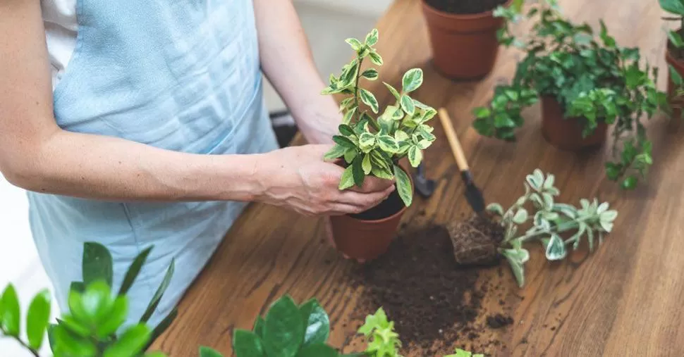 • poner unos pocos centímetros de sustrato abonado en la nueva maceta, meter la planta y rellenar con más sustrato; presionar un poco para que no quede aire. La tierra debe quedar al menos tres centímetros por debajo del borde de la maceta.