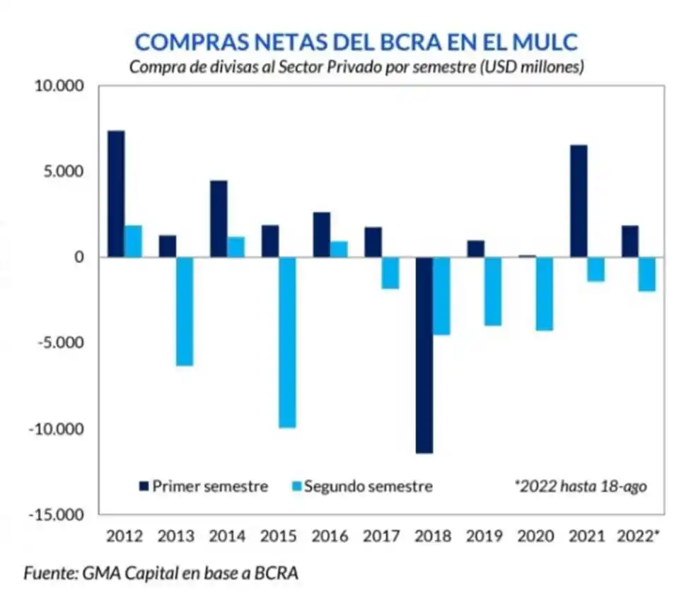 3. ‘Creatividad y arbitrariedad’: desdoblamiento. Si bien el acuerdo con el FMI impide la existencia de tipos de cambio múltiples, un desdoblamiento cambiario podría brindarle al Gobierno algo de oxígeno en el corto plazo. ¿Por dónde se escabullen los dólares? Responder correctamente este interrogante nos brinda pistas valiosas acerca de por dónde pasaría la ingeniería cambiaria. En la balanza de servicios, el turismo explica la mayor sangría de divisas. Solo en junio, el déficit de este rubro fue U$S 650 millones. En el año, el rojo superó los U$S 2.500 millones. Y en menos de 100 días comienza la Copa del Mundo de fútbol de Qatar… A su vez, para hacer frente a las líneas de crédito privadas en moneda extranjera y el ‘dólar ahorro’, el Central tuvo que desprenderse de U$S 2.000 millones en el MULC sólo el primer semestre del año. Un desdoblamiento del tipo de cambio sobre estos apartados en particular habilitaría la negociación de las operaciones asociadas a un precio más cercano al de mercado, y ayudaría al BCRA a morigerar la hemorragia. Por otro lado, las operaciones vinculadas a la balanza comercial de bienes seguirían bajo el tratamiento actual, aún con el problema latente por la apreciación cambiaria, la brecha y los impuestos.