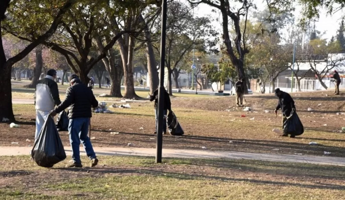 Limpieza en el parque 9 de Julio. FOTO MUNICIPALIDAD DE SAN MIGUEL DE TUCUMÁN