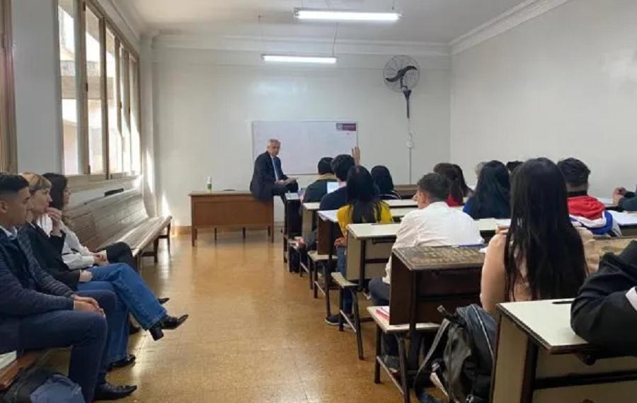 El presidente Alberto Fernández ejerció hoy su rol como profesor de Derecho Penal en la Facultad de Derecho de la Universidad de Buenos Aires (UBA).