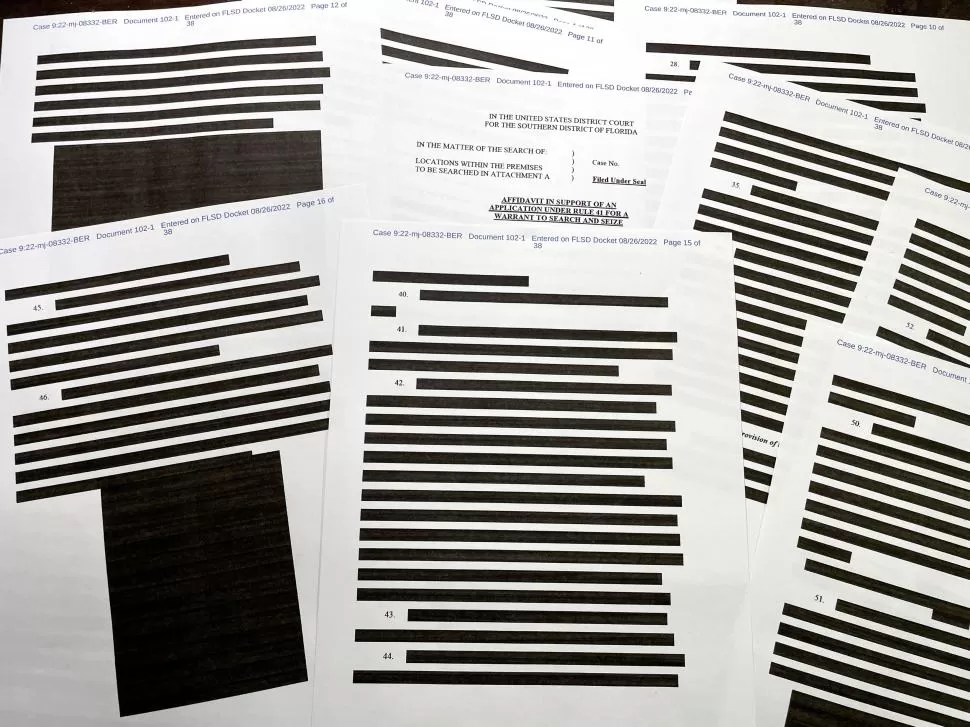 El Departamento de Justicia de Estados Unidos publicó una versión editada del documento legal que permitió al FBI incautar registros gubernamentales secretos de la casa del ex presidente Donald Trump en Florida.