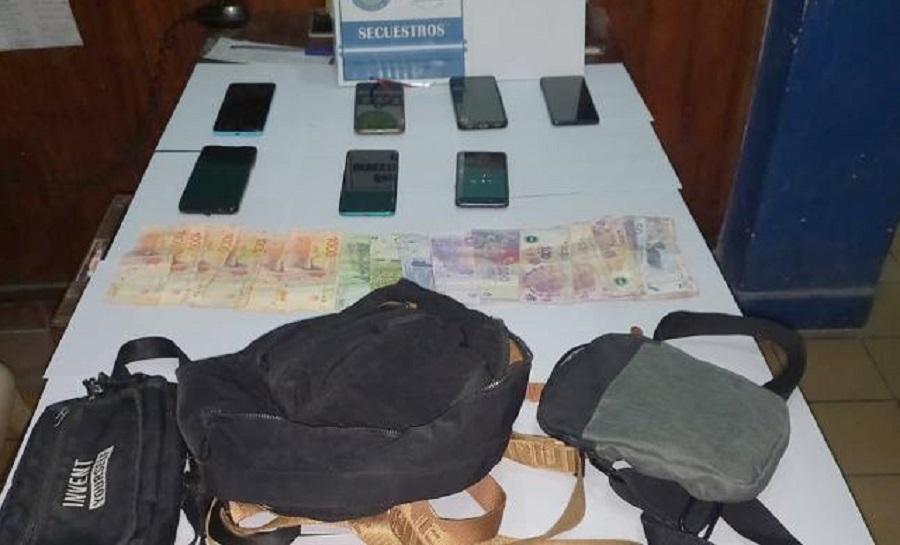 En presencia de testigos, los policías requisaron a los sospechosos y secuestraron 7 teléfonos celulares, 4 bolsos y más de $8.000. Con respecto a los aparatos telefónicos, se realizó una consulta en la aplicación pública Encacom Imei que permitió determinar que poseían registros de hechos ilícitos y se encuentran inhabilitados para su uso.