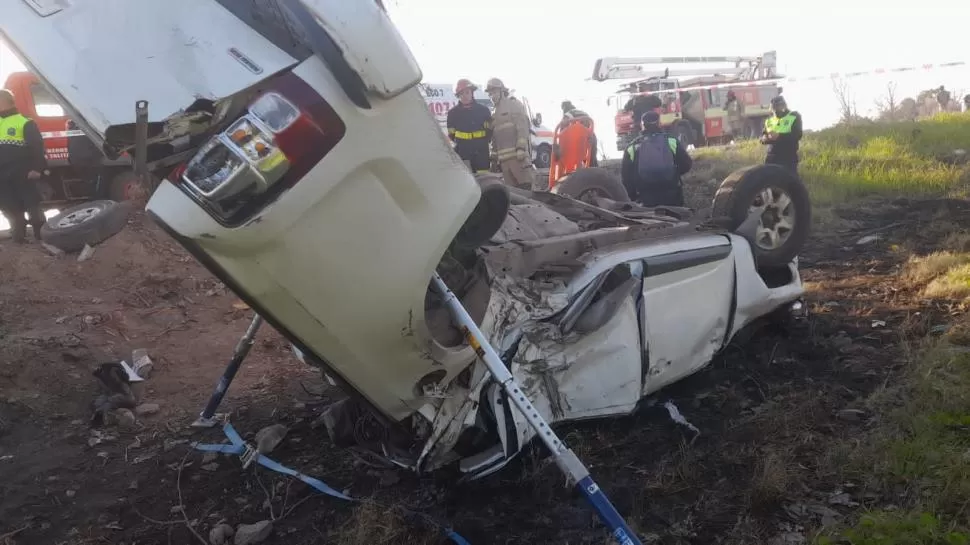 Ayer volcó una camioneta frente al cementerio del Angel, por la autopista de Circunvalación. A raíz del vuelco, cuyas causas se investigan, falleció la policía Cynthia Edith Brandán.