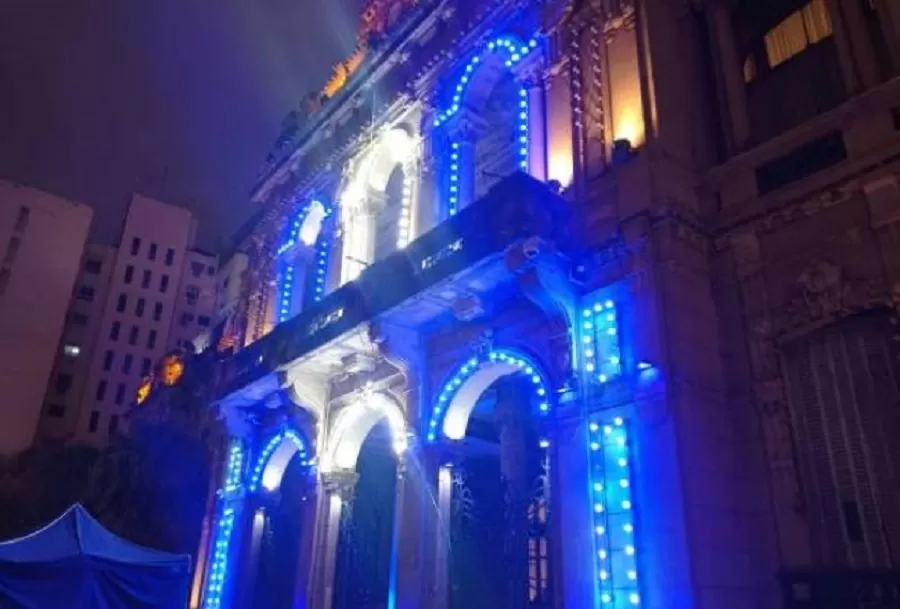 La Casa de Gobierno de Tucumán se iluminó de azul este 19 de octubre, en apoyo a las personas sordas.