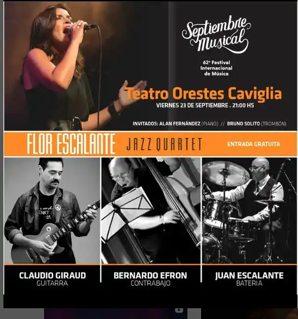 “Haremos repertorio de George Gershwin y Thelonious Monk; clásicos como ‘On a sunny side of the street’, de Jimmy Mchugh, versionado por nosotros. Y también ‘St Louise Blues’, de M.C Handy con arreglo propio de Juan Manuel Escalante; ‘Bossa nova’, de Ivan Lins, y ‘Samba de viao’, de Tom Jobim”, anticipa Florencia Escalante, la voz del cuarteto de jazz homónimo, junto a las trayectorias de Juan Manuel Escalante (batería y voz), Claudio Giraud (guitarra) y Bernardo Efron (contrabajo). Tocarán como invitados Alan Fernández en piano y Bruno Solito en trombón. La invitación es para hoy, a las 21, en el teatro Orestes Caviglia (San Martín 251) en el Septiembre Musical, y con entrada libre y gratuita.