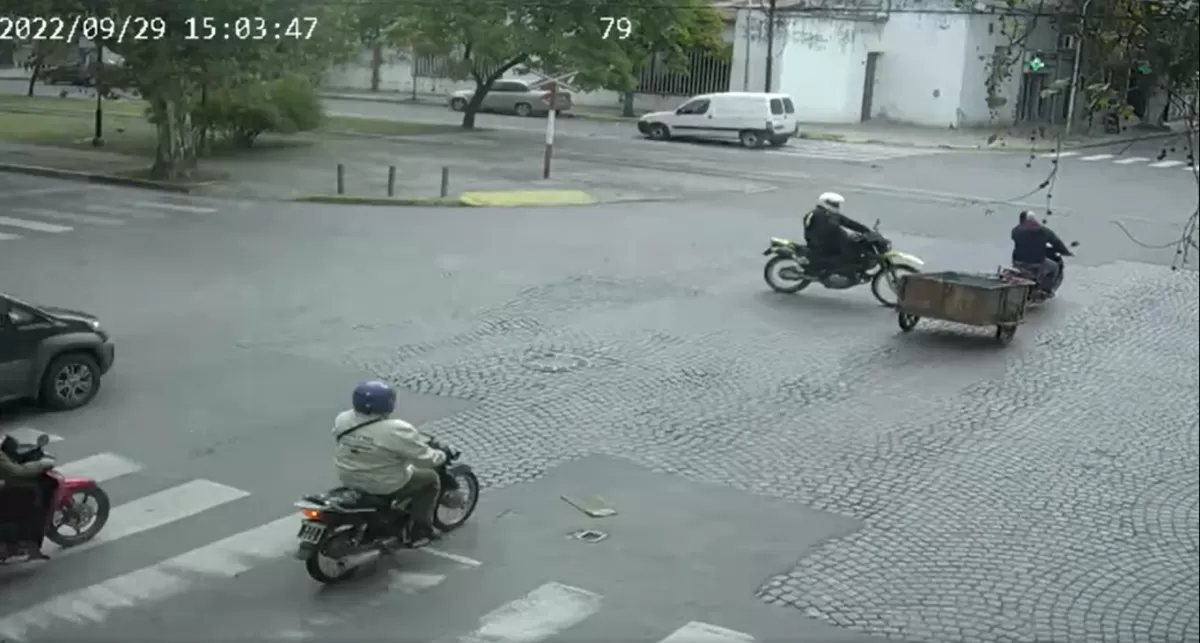 Video: el brutal choque entre un policía motorizado y un motocarro en una esquina de Tucumán