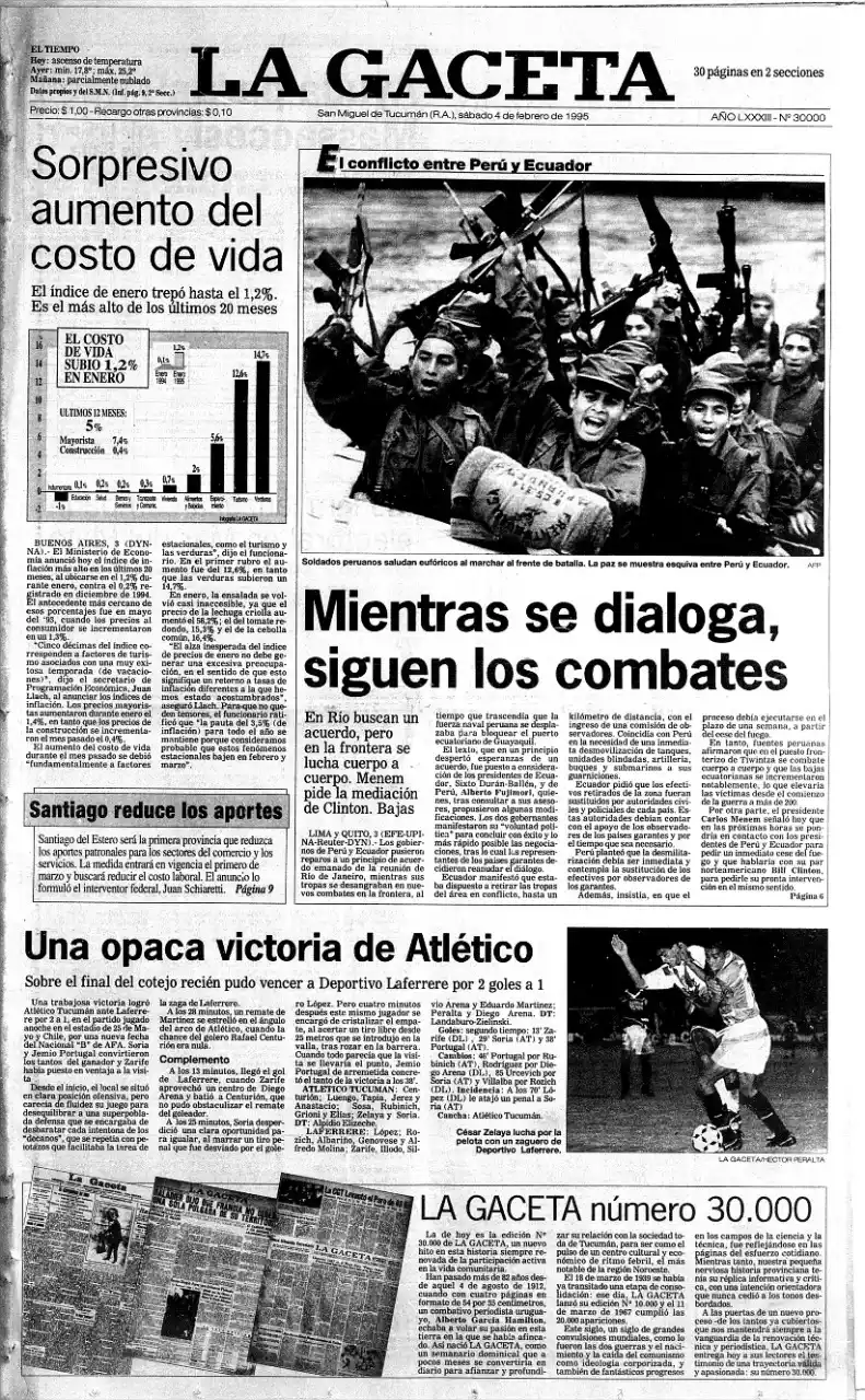 El sábado volvió a ser el día de salida de una edición especial para el diario: la número 30.000, tal como la de los 20.000. Ocurrió el sábado 4 de febrero de 1995, 23 años después. En la tapa se destaca el acontecimiento con la imagen de las tres portadas anteriores y resaltando que constituye un hito en esta historia siempre renovada de la participación activa en la vida comunitaria. “Este siglo, un siglo de grandes convulsiones mundiales, como lo fueron las dos guerras y el nacimiento y la caída del comunismo como ideología corporizada, y también de fantásticos progresos en la ciencia y la técnica fueron reflejándose en las páginas. Mientras tanto, nuestra pequeña nerviosa historia provinciana tenía su réplica informativa y crítica con una intención orientadora que nunca cedió a los tonos desbordados”, subrayaba el texto destacado en la tapa.