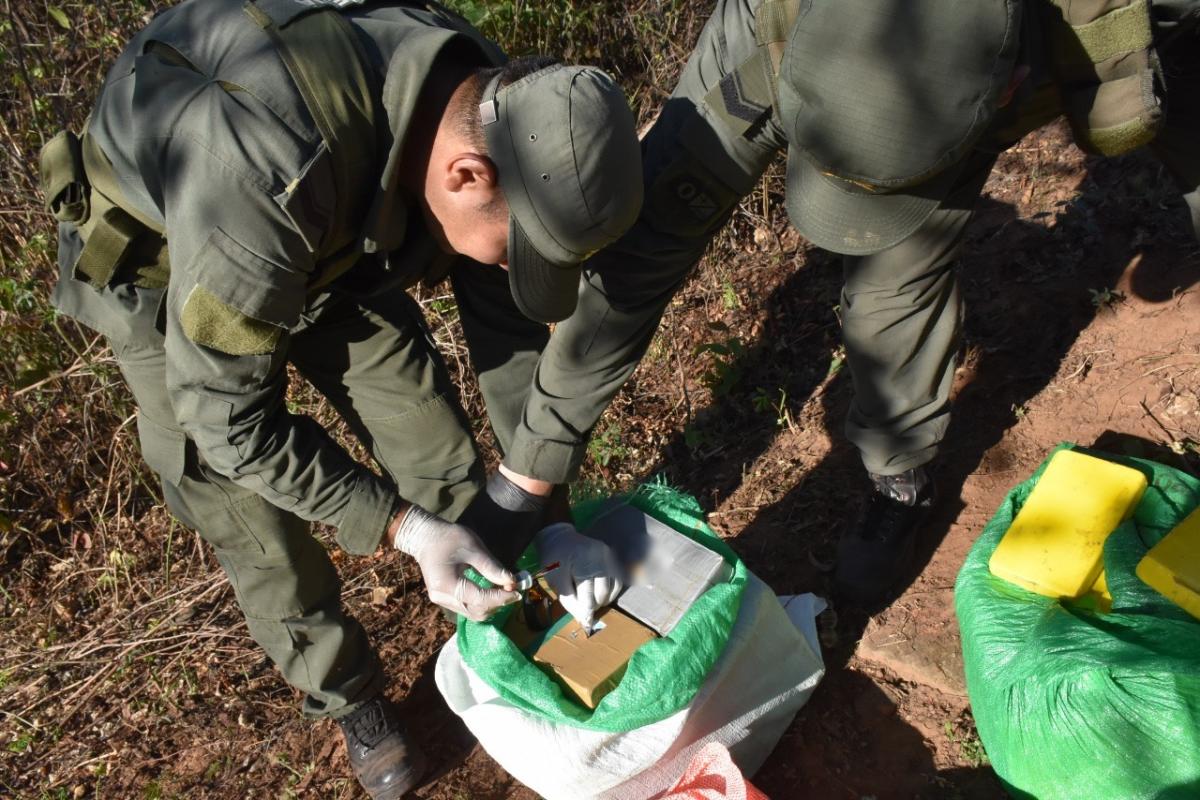 Durante el rastrillaje efectuado en la zona, los funcionarios detectaron seis bolsas tipo arpillera, y otras seis a unos 100 metros de distancia.
