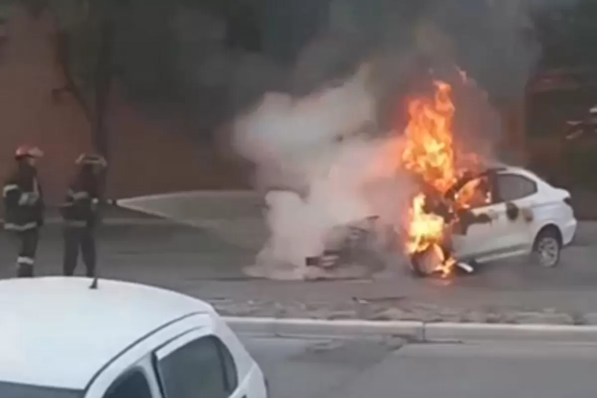 Un auto se prendió fuego al chocar con un taxi en la avenida Belgrano