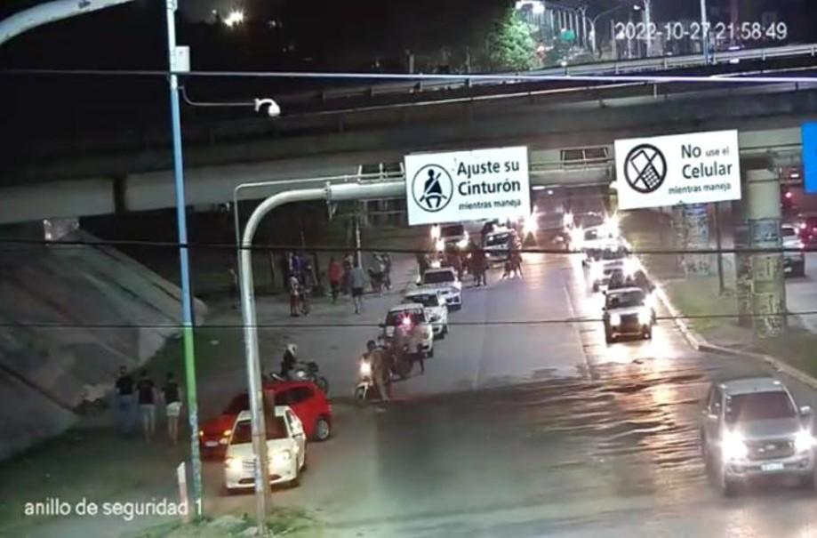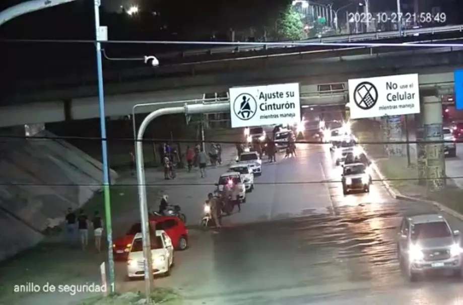 La dramática situación se registró el jueves por la noche en el puente de la autopista de uno de los ingresos a la ciudad y fue tomada por una de las cámaras de monitoreo que emitió una alerta.