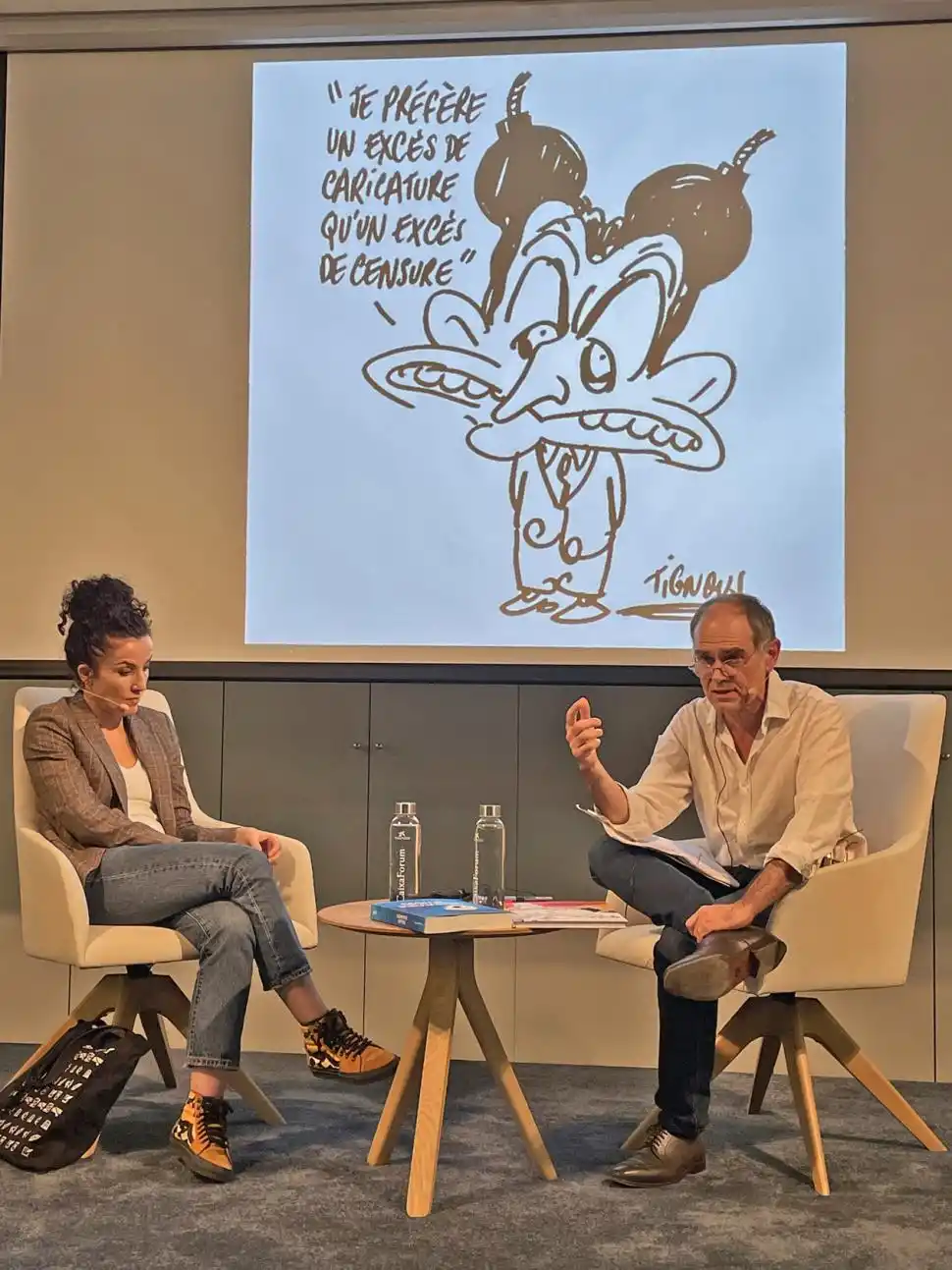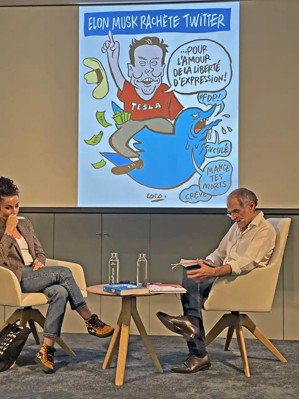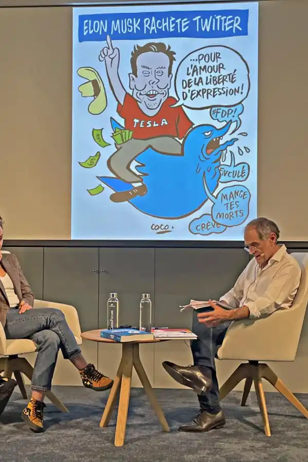 “Tenemos la risa para superar las situaciones graves de la actualidad. Hay mucho horror en la vida cotidiana, y nosotros lo vencemos dibujando y sonriendo”, afirma “Coco” a la audiencia intrigada por su decisión de continuar, pese a todo. “Después del atentado, dibujamos sin miedo a nada para la resistencia y para no dejarnos sumergir por la violencia”, añade.