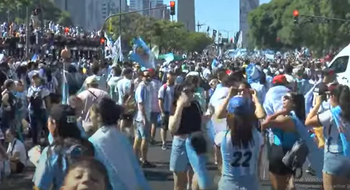 “Somos campeones del mundo”, fue una de las frases que más resonaron en la avenida 9 de Julio, la mayor concentración dentro del posible recorrido del plantel nacional.