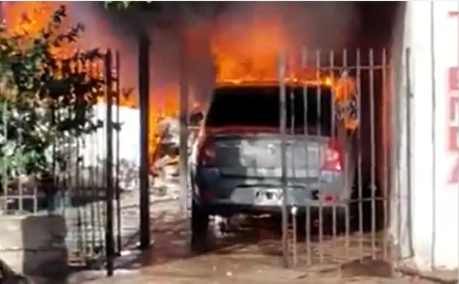 Los bomberos asistieron al lugar y lograron rescatar a la mujer y al agresor que tenía quemaduras leves y fueron trasladados al Hospital Municipal Santamarina.