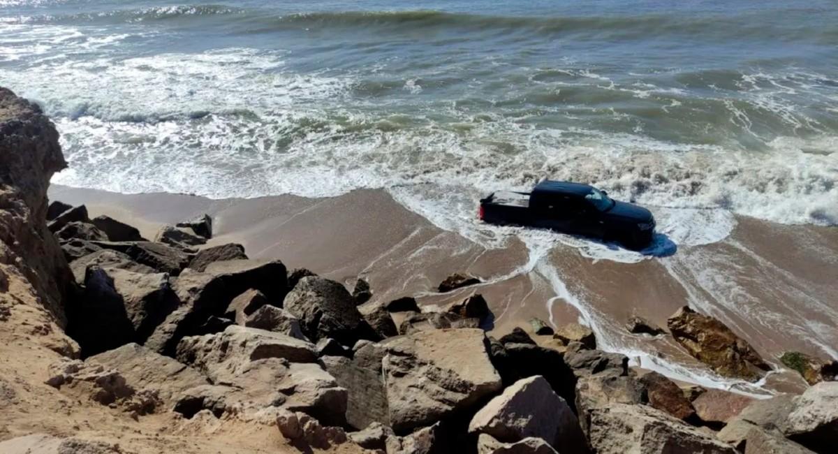 La camioneta de la pareja de la mujer fue encontrada en el Mar en Miramar, lo que se esperaba a los bomberos para el arrastre del vehículo a la zona de playa para el peritaje, mientras se busca al conductor.
