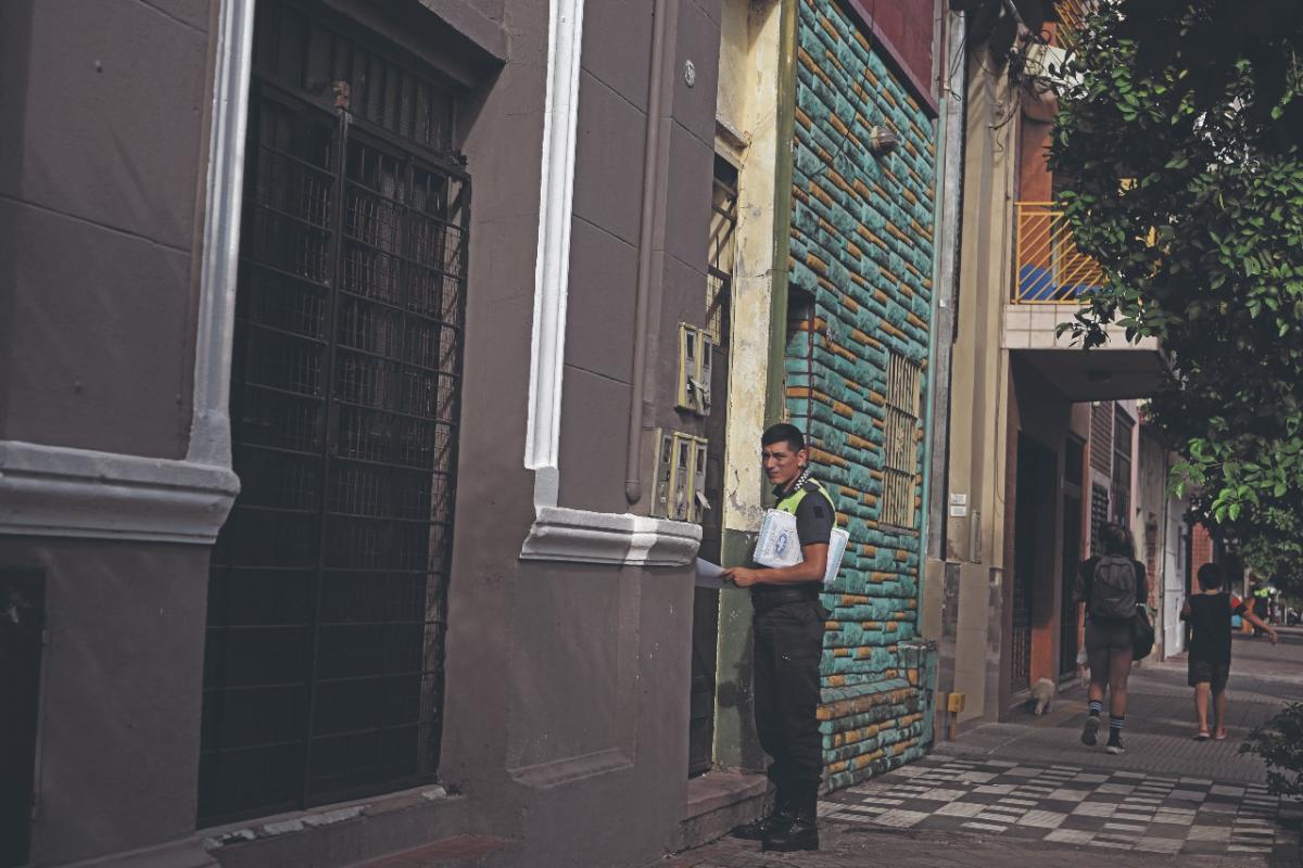NOTIFICACIÓN. Un oficial de la seccional 1° lleva una cita para la audiencia. FOTO LA GACETA/DIEGO ARÁOZ