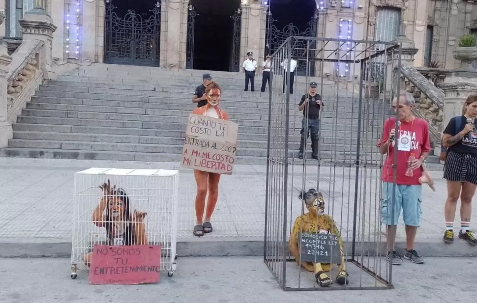 Con pancartas, plantearon la consigna “Tucumán libre de zoológicos”. Y llamaron a “dejar la ignorancia de lado” y a resolver de inmediato el problema de los animales en cautiverio en la provincia.