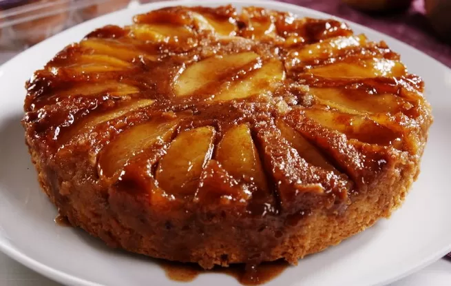 7. Transcurrido ese tiempo colocar un plato sobre la sartén y dar vuelta la torta.