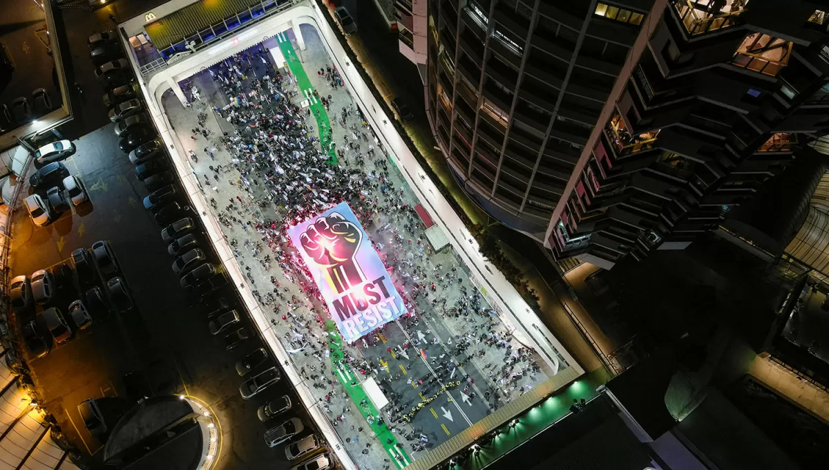 Una imponente vista aérea de las protestas de ciudadanos en contra de la reforma judicial de Israel, en Tel Aviv.