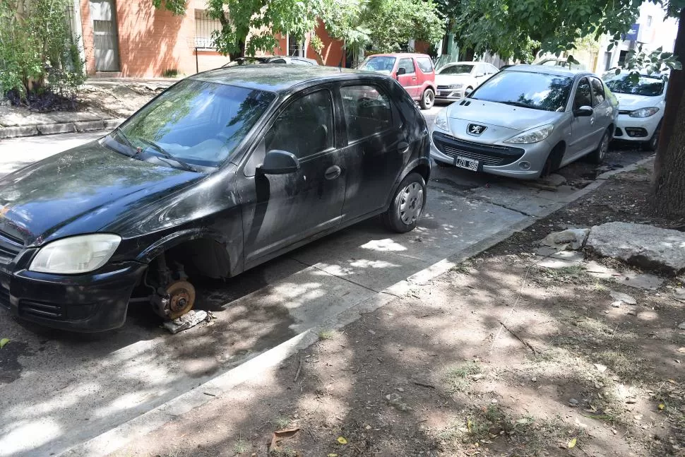 EN FILA. Los vecinos no se explican aún cómo actuaron los ladrones. Sacaron las ruedas de cuatro autos. La Gaceta / foto de José Nuno