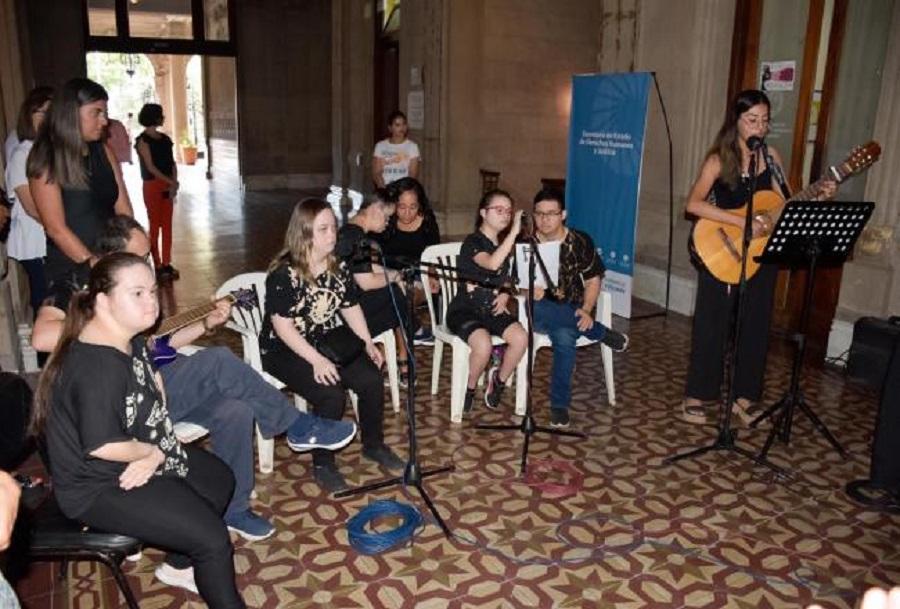 "Esta actividad abordó y trabajó los derechos humanos fundamentalmente, a través de la participación de esta fundación que siempre estuvo colaborando con nosotros. Hoy lo hizo con un grupo que trabaja las artes escénicas, y en este caso, presentaron dos canciones: un grupo estuvo cantando y el otro bailaba", comentó la directora de Difusión y Educación de la secretaría de Derechos Humanos y Justicia, Emilia Martínez.